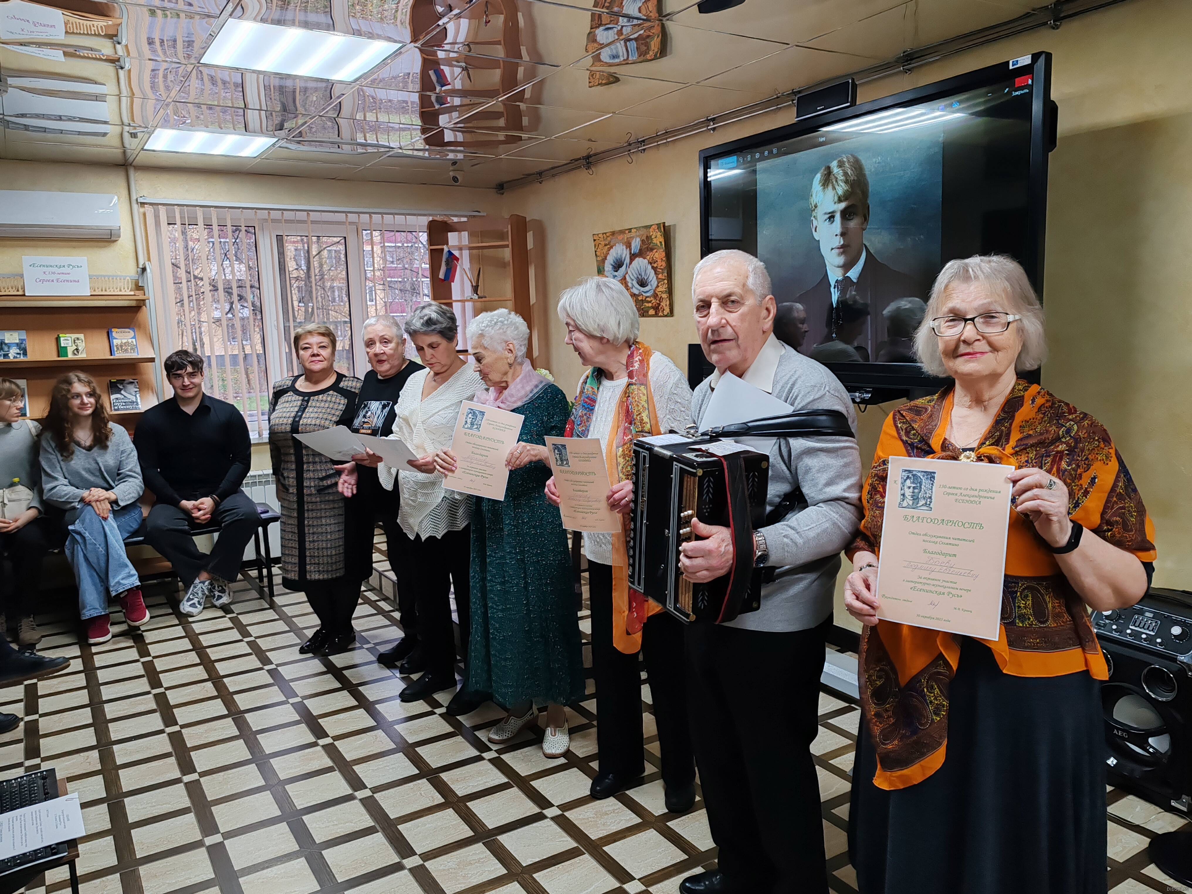 Его участники читали стихи поэта о природе под музыку П.И. Чайковского «Времена года». Затем любимые стихи Есенина читали зрители. И как читали! А затем ведущая Светлана Анатольевна Шохина рассказала о судьбе и творчестве Сергея Есенина. Зрители принимали самое активное участие. Они делились своими знаниями о поэте, рассуждали о витиеватостях его судьбы. А в заключение все вместе спели песню «Отговорила роща золотая…». В течение всей встречи звучали стихи и песни талантливейшего поэта России. Задушевный вечер произвел неизгладимое впечатление на зрителей, и они одарили организаторов дружными аплодисментами. | |