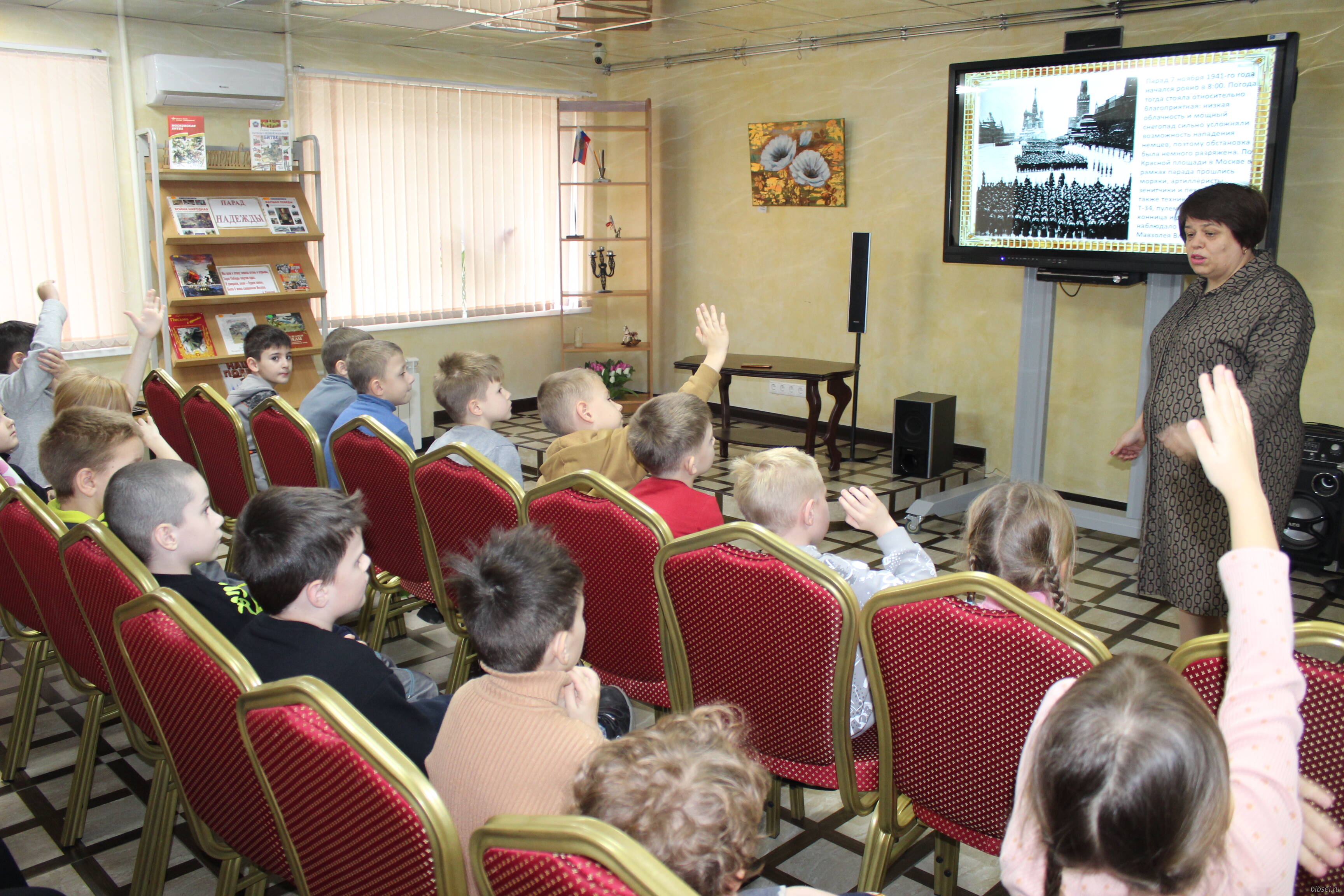 06 ноября в Отделе обслуживания читателей посёлка Селятино прошёл час мужества «Парад надежды», для воспитанников детского сада, рассказывающий о Московской битве и параде на Красной площади в 1941 году. Ребята погрузились в героическую страницу отечественной истории — узнали о Московской битве и легендарном параде на Красной площади 1941 года.