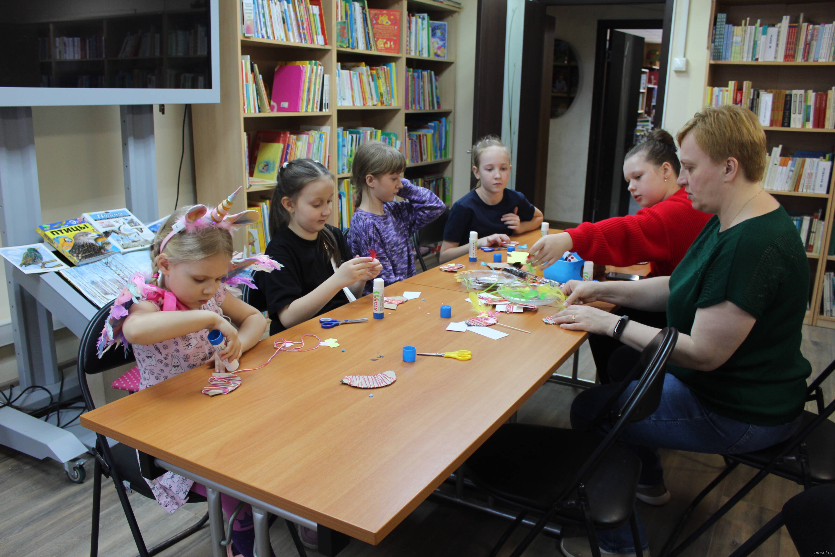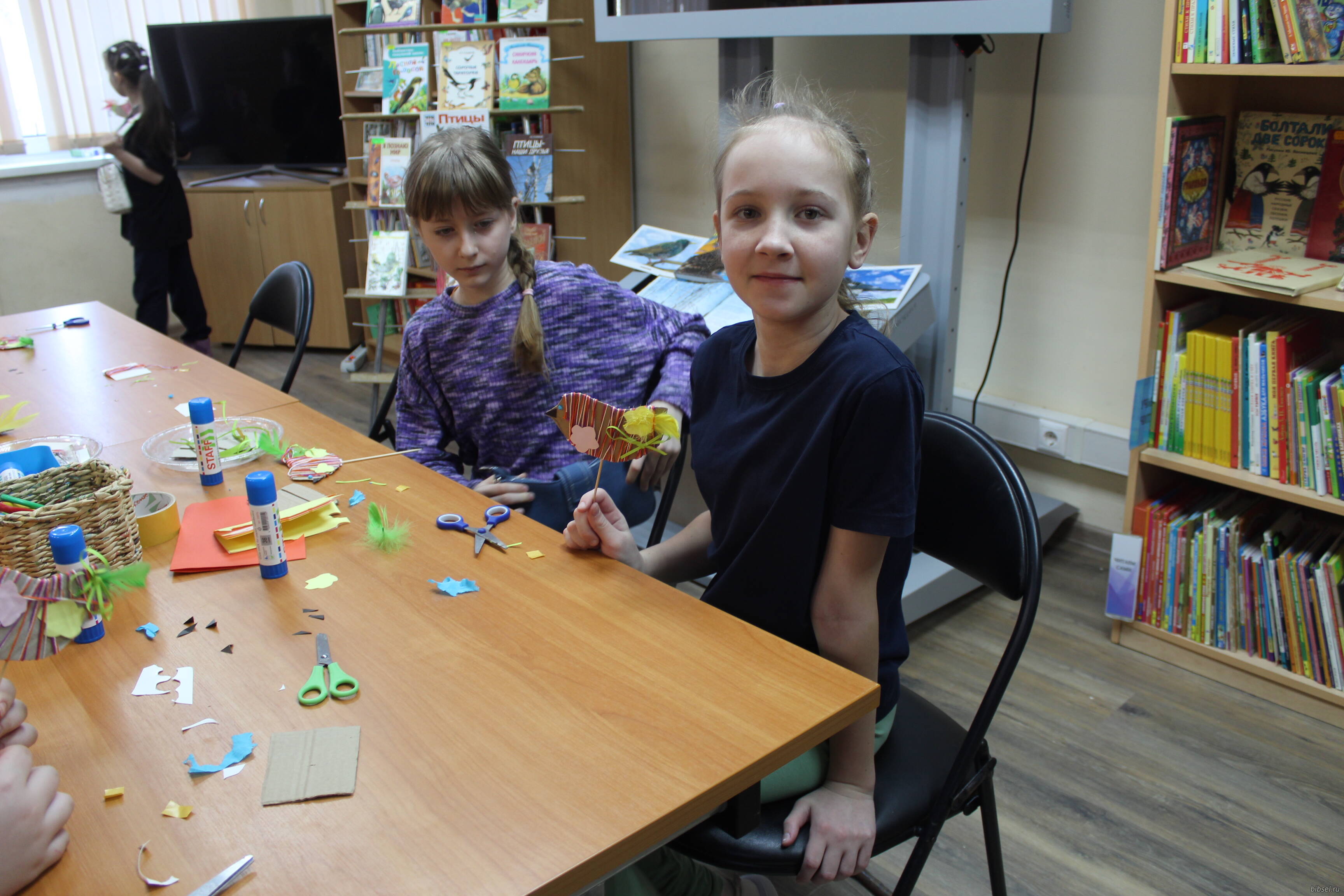 14 марта в отделе обслуживания читателей п. Селятино прошел мастер-класс по изготовлению сувенира «Весенний креатив: творим и вдохновляемся». Ребята мастерили птичек из картона и пряжи, украсили цветочками из бумаги. В процессе работы дети вспомнили о зимующих и перелетных птицах, об известных рассказах и сказках, в которых встречаются птицы.